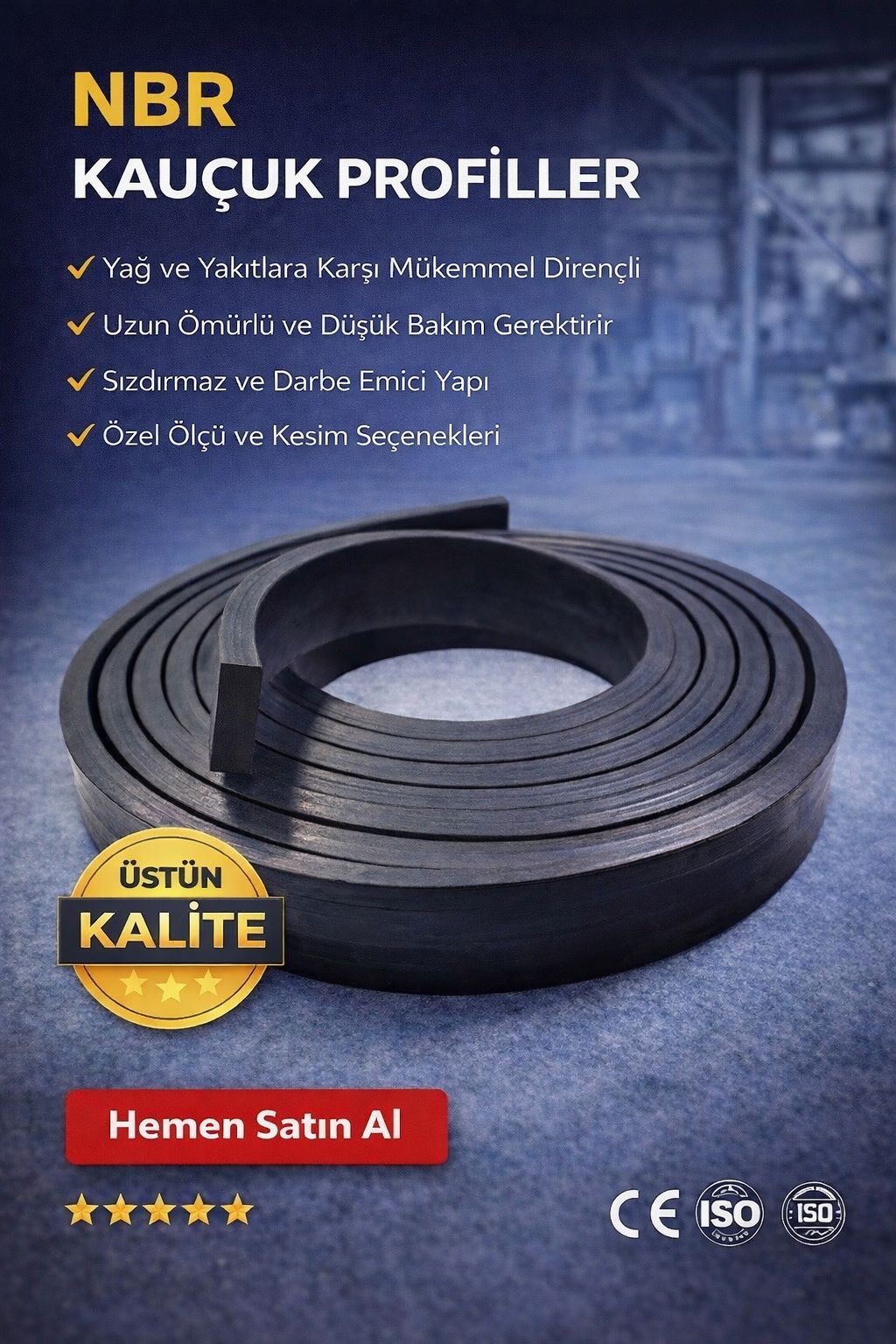 NBR (Nitril Bütadien Kauçuk) profiller, özellikle yağ, yakıt ve gresle temas eden endüstriyel uygulamalar için geliştirilmiş yüksek performanslı kauçuk profil çözümleridir. Aşınmaya, kimyasallara ve mekanik zorlanmalara karşı üstün dayanım sunar. Bu özellikleri sayesinde otomotiv, makine ve sanayi tesislerinde yaygın olarak tercih edilir.