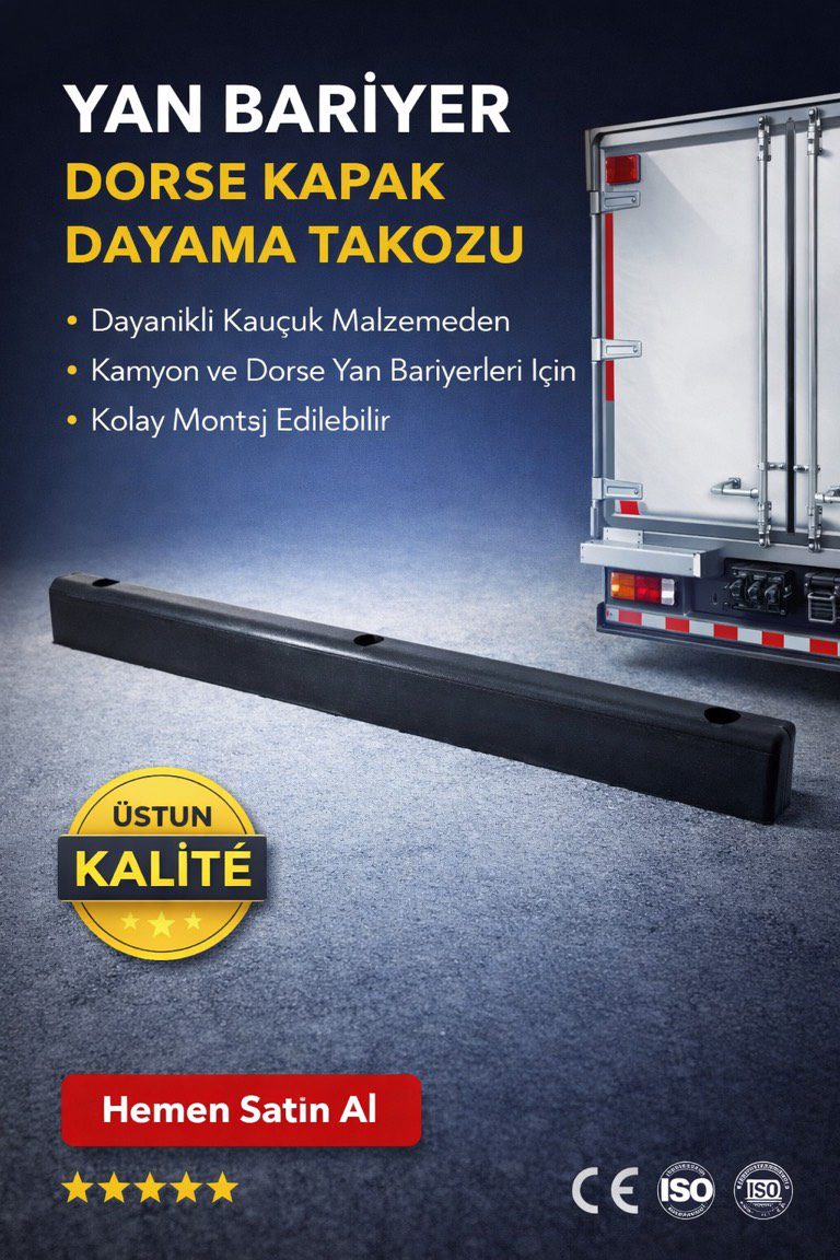 Dorse Yan Kapak Dayama Takozu, kamyon ve dorselerin yan kapaklarının güvenli şekilde dayanmasını sağlamak amacıyla özel olarak tasarlanmıştır. Kapakların şaseye zarar vermesini önler, darbe ve titreşimleri sönümleyerek uzun ömürlü kullanım sunar.